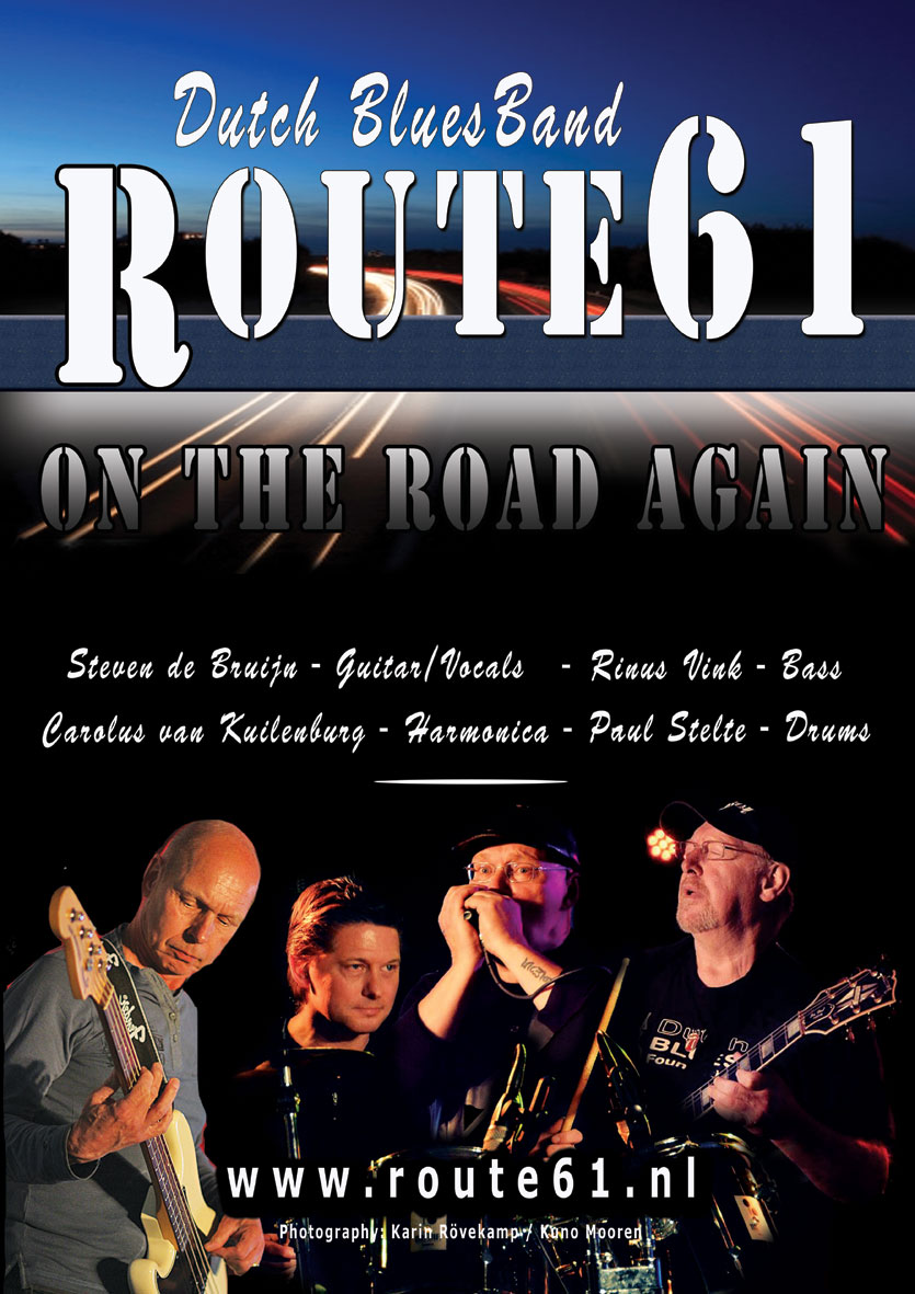 RouteRoute61, een passende naam voor een band die, via de Blueshighway/Route61, weer terugkeert naar de roots van de blues. Na een aantal succesvolle bluestours te hebben afgesloten, zijn Steven de Bruijn (gitaar en zang), Rinus Vink (bas) en Carolus van Kuilenburg (mondharmonica) en Paul Stelten (drums) weer terug daar waar ze ooit begonnen waren. Authentieke blues spelen van hen die ooit de blueshigway/route61 bewandeld hebben. Paul Stelte, een zeer ervaren drummer, vult de band perfect aan. Bluesband “Route61”, bestaat uit een groep zeer ervaren muzikanten met bluesmuziek in hart en ziel met een ruime podium ervaring op festivals, grote als kleine podiums.  Het repertoire bestaat uit werk van veel grote namen uit het verleden, zoals bv. John Lee Hooker, BB King, Sam’’Lighting’’ Hopkins, Mose Allison, Sonny Boy Williamson, Willy Dixon en vele anderen. Verschillende blues stijlen zijn vertegenwoordigd in het repertoire, bekende en minder bekende covers aangevuld met eigen werk.  Deze combinatie zorgt voor een perfecte balans tussen authentieke blues en blues in een meer modern jasje, wat altijd weer een garantie is voor een gezellige en een voelbare blues dag/avond.