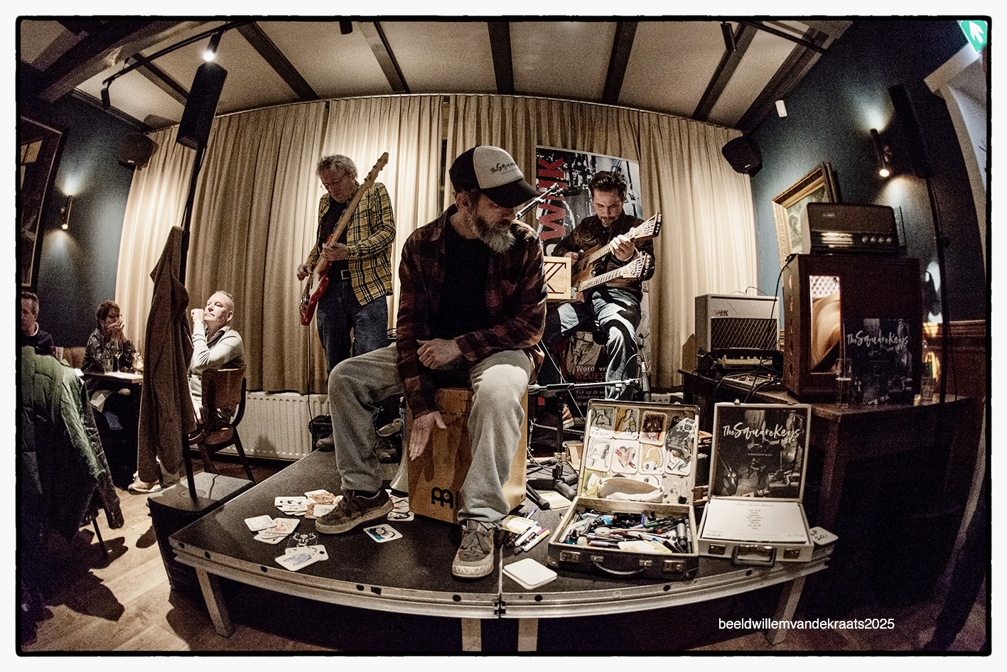 17.30-20.00 Restaurant de Engel: the Square Keys (finalist Dutch Blues Challenge 2025) Een inventief Limburgs duo die een unieke mix van blues, boogie en eigenzinnige grooves speelt. Hun “homegrown blues” combineert originele nummers met onverwachte covers, ondersteund door zelfgebouwde instrumenten, Hammond-orgelklanken en slidegitaar. De muziek ontstaat spontaan; een setlist bestaat nauwelijks, maar telkens komt er een krachtig nummer uit. Live wordt de band veelal aangevuld door Maikel Verkoelen, die cajon, visuals en creatieve interactie met het publiek toevoegt. Hun creatieve aanpak leverde hen in 2023 de winst op van de prestigieuze BRUL-contest voor Blues & Roots. The Square Keys staat garant voor verrassende, energieke shows en een onvergetelijke muzikale ervaring. GijsJacobs zang, gitaar en feetdrums en SraarScholt bas.