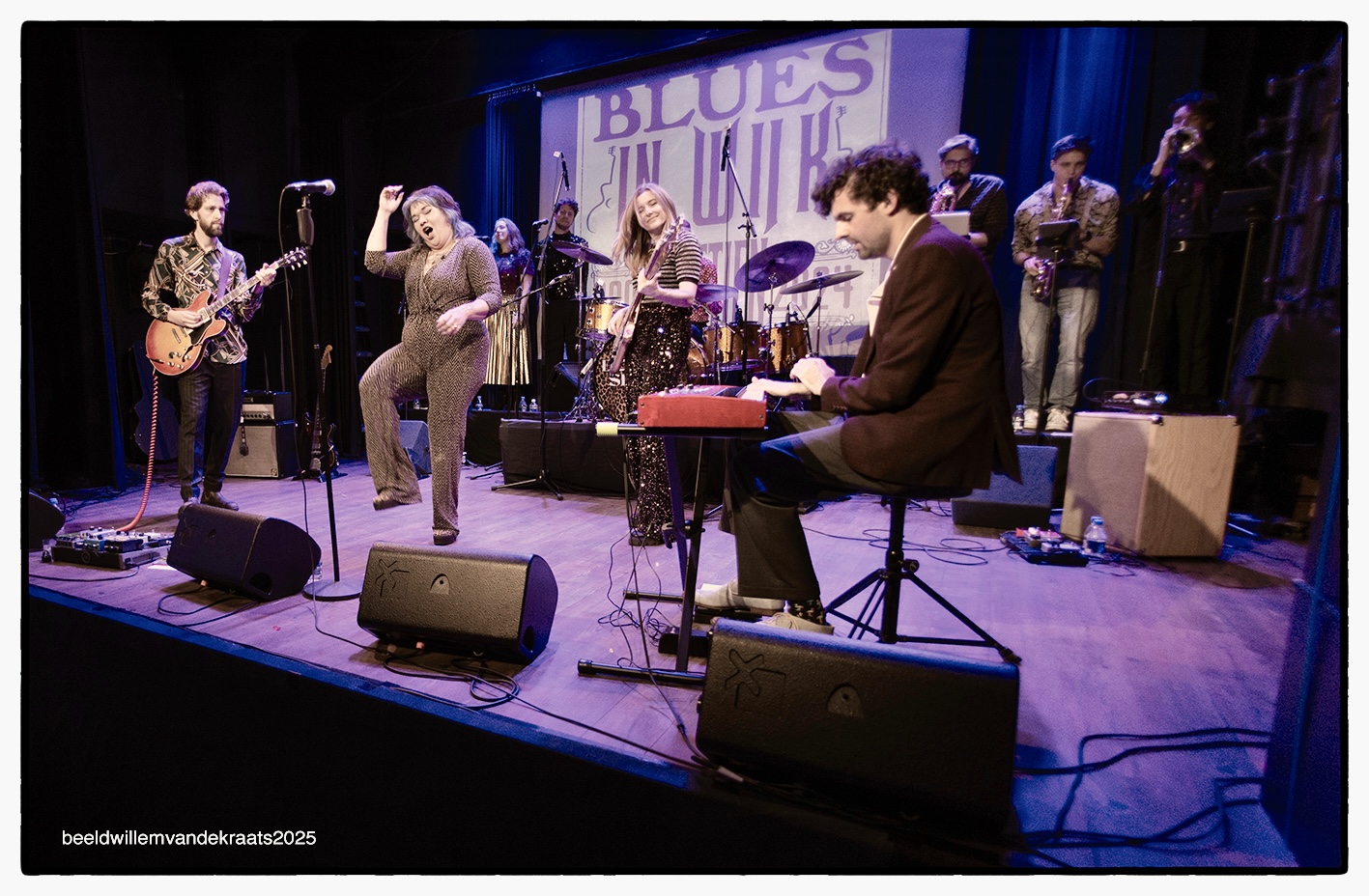 19.00-20.30 Calypso theater: Five Dollar Shake (winnaar Dutch Blues Challenge 2024). Een heerlijke frisse Utrechtse band. Zo lang bestaat Five Dollar Shake nog niet, maar de band zag haar livereputatie razendsnel groeien, en de podia groeiden mee. Door hun aanstekelijke podiumenergie, virtuositeit en – natuurlijk – ijzersterke songs is de band een graag geziene gast op festivals, poppodia en afgeragde bruine kroegen. Culemborg Blues, dB’s, de Zwarte Cross: waar je deze band ook neerzet, binnen no time staat je tent op z’n kop. Het is duidelijk: Five Dollar Shake bouwt overal een feestje. Maar 2024 was voor de band extra speciaal. De band presenteerde in een uitverkochte De Helling in Utrecht haar eerste album ‘Bigger Heart’: een plaat met een verhaal. Een tour langs verschillende Nederlandse clubs bracht de band uiteindelijk terug naar Utrecht, waar ze in eigen stad de finale van de Dutch Blues Challenge wonnen. Lucinda Legaspi – Lead vocals, Bas van der Starre – Keys, Allert van Westen – Gitaar, Jelmer de Haas – Drums, Marja Silvertant – Bas, David Vis Larzábal – Backing vocals, Gideon van Wingerden – Backing vocals, Barbara van der Waerden – Backing vocals, Dirk Hooijer – Trompet, Gerben de Vries – Alt saxofoons en Sebastiaan Wong – Bariton saxofoon