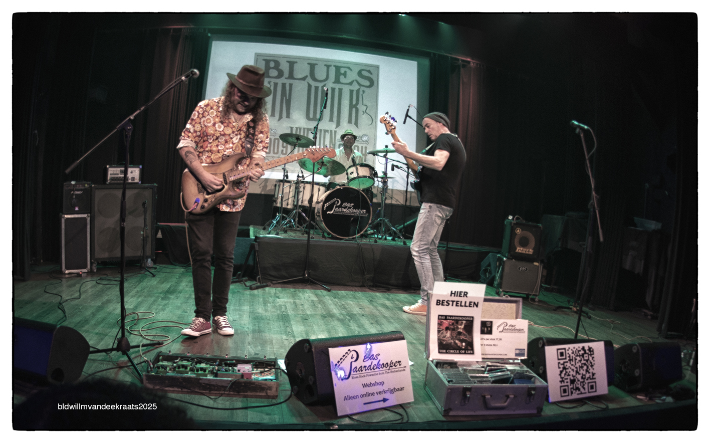 22.00-23.30 Calypso theater: Bas Paardekooper (Award Best Dutch Blues Muzikant 2024). In een wereld die steeds meer om DJ’s en technobeats draait is het een verademing om naar de muzikaal ervaren mannen van de band “Bas Paardekooper” te kijken en luisteren. De in Scheveningen geboren Bas kreeg muziek met de paplepel ingegoten. Z’n vader speelde op de accordeon en zoonlief experimenteerde op drums, piano, trompet, accordeon en saxofoon. Allemaal hartstikke leuk, maar z’n grote muzikale liefde werd de gitaar die hij voor z’n 12e verjaardag kreeg. Nu heeft hij een Fender Stratocaster waar hij zijn nummers op speelt. Bas kreeg op z’n 14e les van Ted Oberg van de Livin Blues en speelde in de jaren daarna in diverse coverbands. In 2007 was het tijd om een eigen band te beginnen en albums met eigen nummers op te nemen en zo geschiedde. In Tivoly Vredenburg is Bas door de vakjury van The Dutch Blues Foundation unaniem genomineerd als Beste Nederlandse Bluesmuzikant 2024. BasPaardekooper zang en gitaar, Roel van Leeuwen drum en André de Bruijn bas.