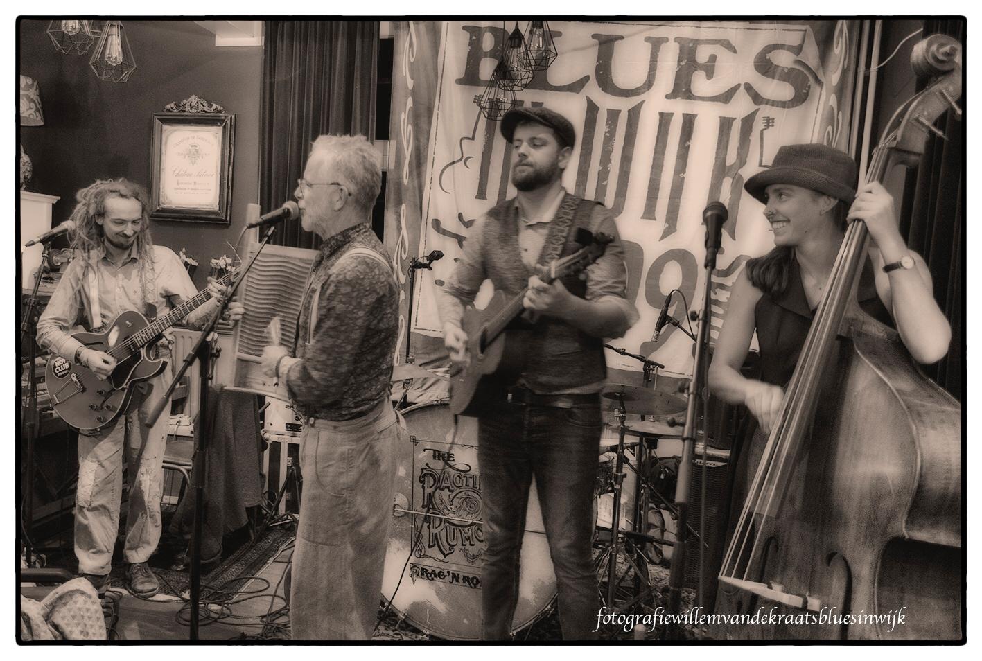 Een lang gekoesterde wens van De Veldpoort eten en drinken is een keer een leuke bluesband in de zaak. Ivm Corona kon dat helaas niet in 2020 en 2021, maar in 2022 wél. Op zaterdagavond 15 oktober gaat het dak eraf met the Ragtime Rumours , een kleurrijk gezelschap uit de Limburgse Maasdelta! Zoals hun naam doet vermoeden brengt de band een bruisende mix van ragtime, drunk-swing, swampy blues, hillbilly en western ten gehore. Stel je voor wat je krijgt als Pokey Lafarge en Tom Waits bij Django Reinhard op bezoek gaan, een flinke pot koffie drinken en daarbij naar Robert Johnson luisteren. En dan hun instrumenten oppakken… zelf noemen ze het “Rag ’n Roll”. In 2017, 2018 en 2019 eindigden zij als eersten op enkele toonaangevende festivals zoals de Dutch Blues Challenge, de European Blues Challenge en de Popprijs Limburg. Dan heb je wat in je mars!