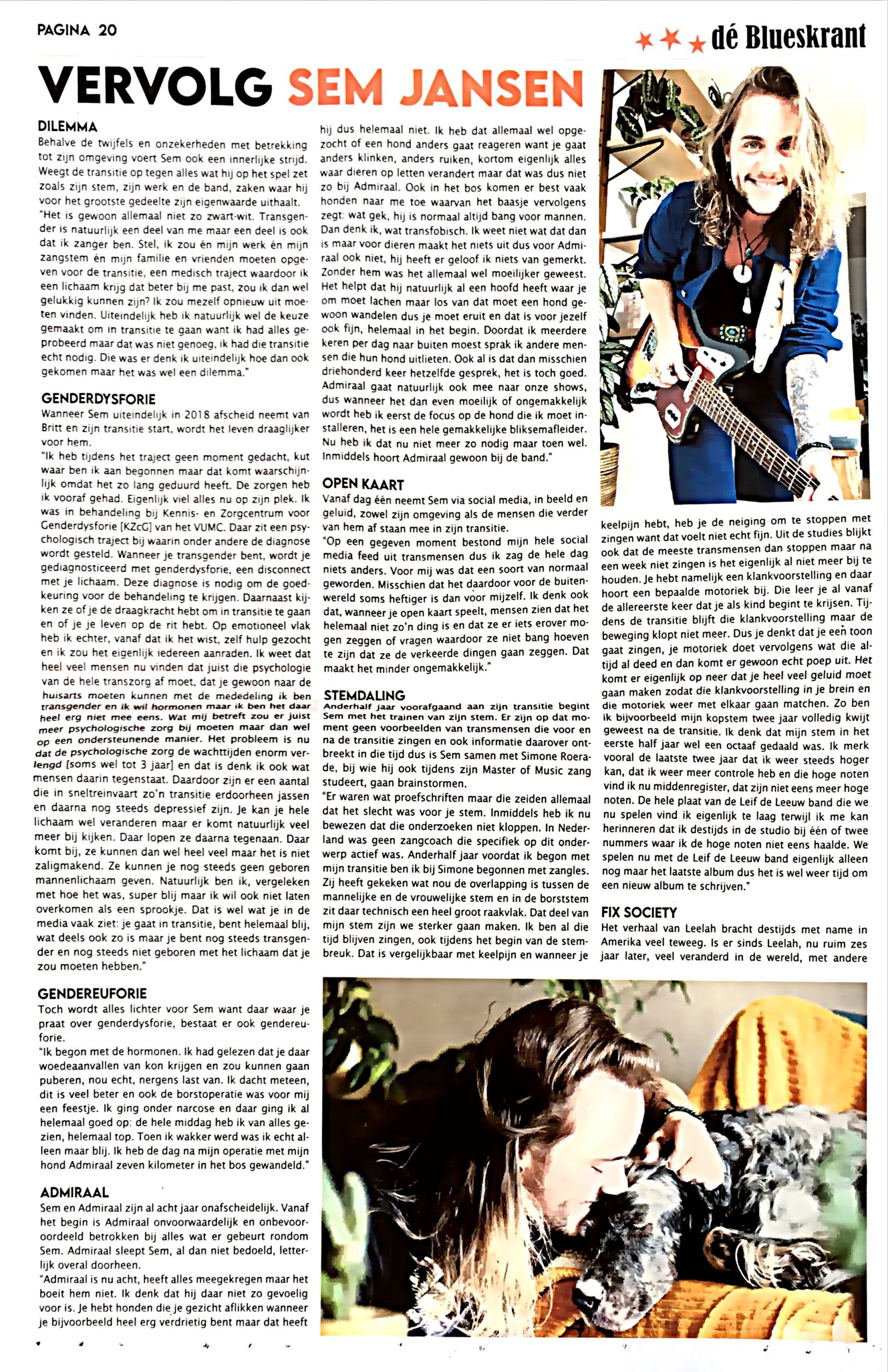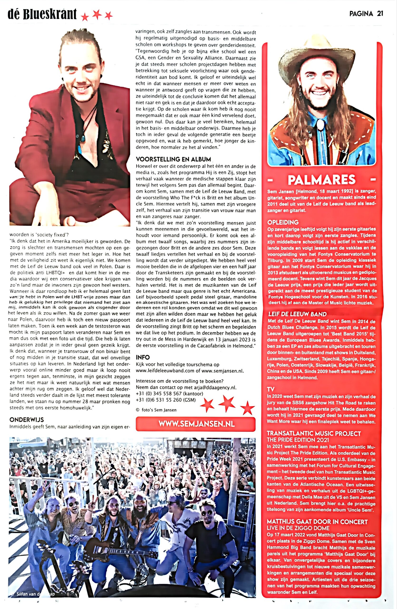 Uitgebreid  artikel over Sem en de show in dé Blueskrant.